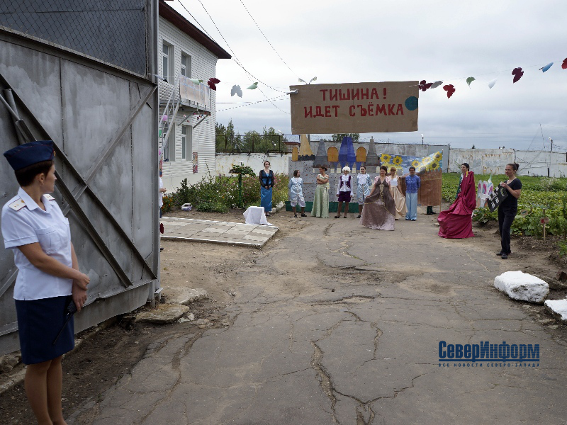 К сегодняшнему празднику женщины готовились особенно тщательно: рисовали плакаты, придумывали и шили костюмы, учили роли. Ведь в день смотра полезных дел колония превратилась в одну большую киноплощадку. Тема праздника — Год Российского кино.