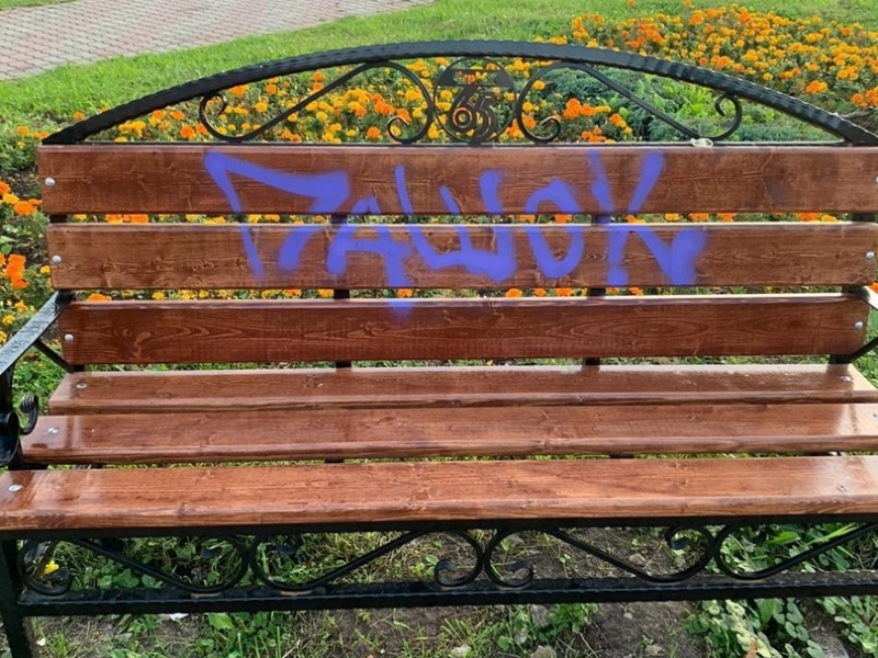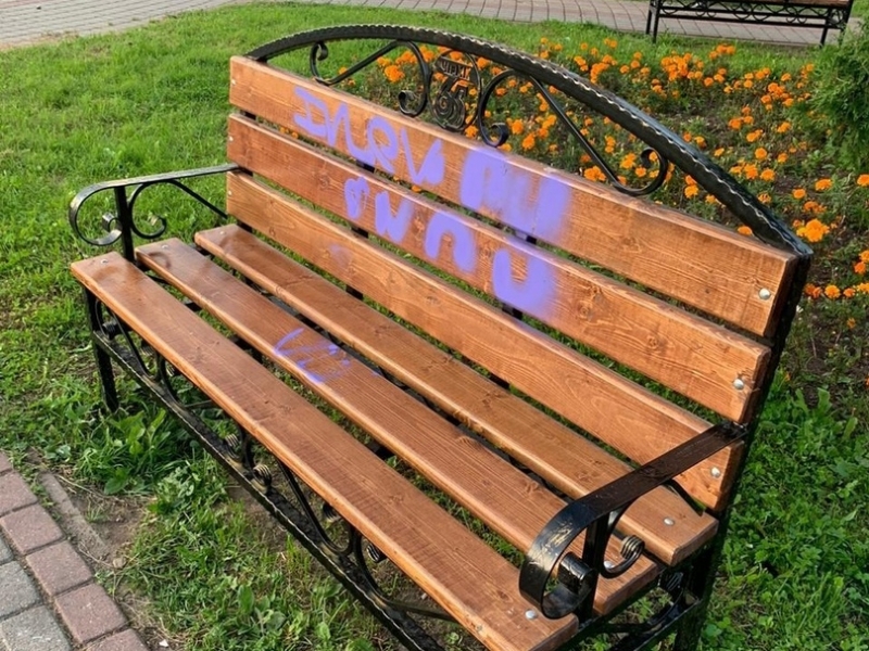 Радоваться обновке горожанам удалось не слишком долго - чуть больше месяца спустя деревянные спинки "украсили" нежно-сиреневые надписи. Об этом рассказал мэр города Вадим Германов. Для таланта любителей граффити нашлось бы другое применение. А пока им просто предстоит общение с полицией.