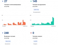 За сутки подтвердилось 248 случаев. Выздоровели 145 пациентов, всего с начала пандемии выписали с больничного почти 190 тысяч человек.