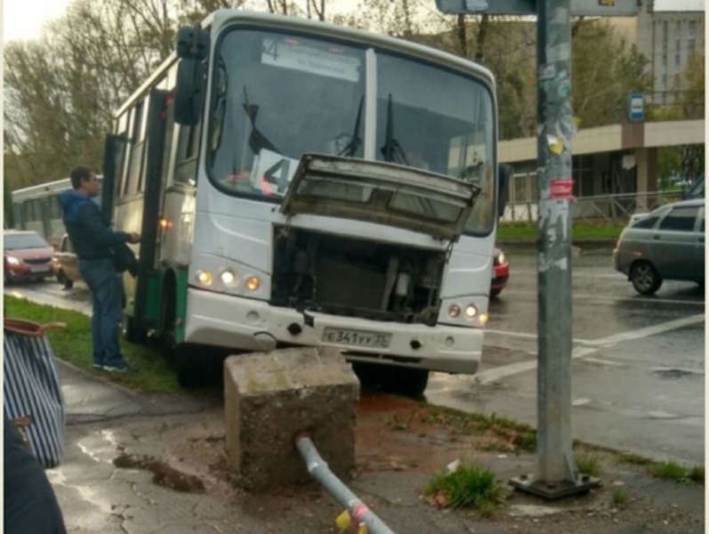 В Череповце рейсовый автобус врезался в дорожный знак, объезжая пешеходов