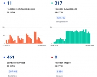 За последние сутки выявлен 461 случай ковида, выздоровели 317. Никто не умер, в больницу попали 11 пациентов. Информация опубликована на портале стопкоронавирус.рф.