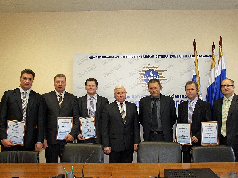 Заместитель Генерального директора - директор филиала ОАО «МРСК Северо-Запада» «Вологдаэнерго» Александр Климанов торжественно вручил руководителям производственных отделений сетевой компании паспорта готовности к работе в осенне-зимний период 2012/2013гг. Документ свидетельствует о подготовленности сотрудников, оборудования и техники предприятия к работе во время пиковых нагрузок и обеспечения надежного и бесперебойного электроснабжения потребителей Вологодской области.