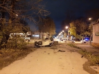 От удара машина перевернулась. Авария произошла ранним утром 25 октября на перекрестке улиц Горького и Либкнехта в Череповце.