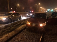 Как сообщили в группе «ДТП и ЧП Санкт-Петербурга», красный Шевроле играл ночью в догонялки с сотрудниками дорожно-патрульной службы в Невском районе Петербурга. Удирающего от преследования остановили на Дальневосточном проспекте, 56 А. Иномарку настигли, загнав на трамвайные пути. Погоня продолжалась до 5:20 утра 26 ноября.