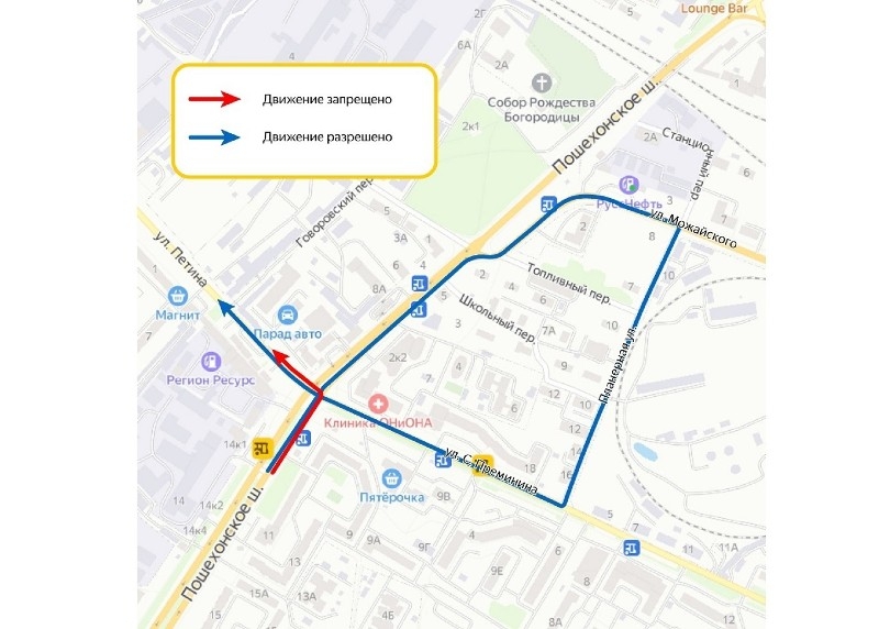 В Бывалово закроют левый поворот с Пошехонского шоссе на Петина