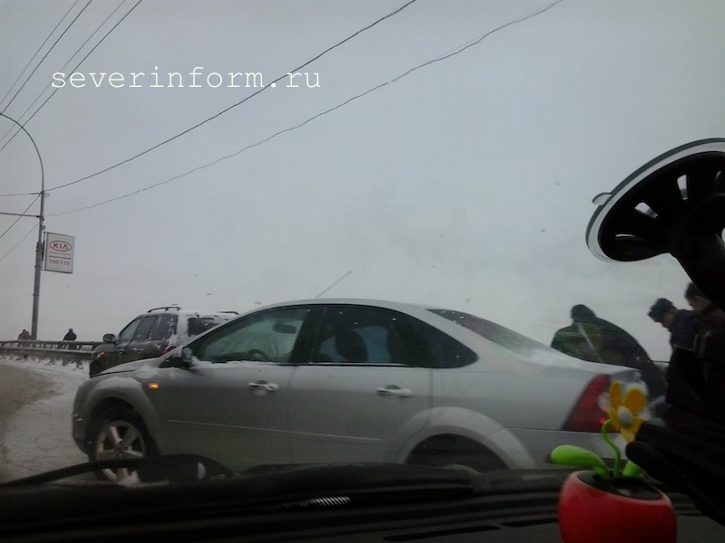 По предварительной информации, при столкновении машин никто не пострадал. Однако на мосту и на улице Ленинградской образовалась большая пробка.