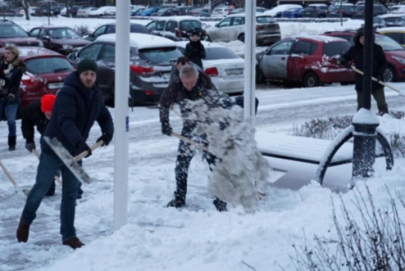 Чиновники Петербурга помогли дворникам расчищать улицы после снегопада
