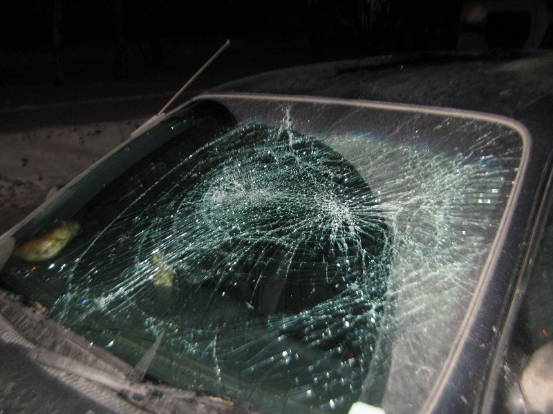 В это врем я из здания вышел нетрезвый посетитель и стал предъявлять претензии владельцу легковушки. Возникла ссора, в ходе которой пьяный злоумышленник взял камень с земли и разбил лобовое стекло в машине.
