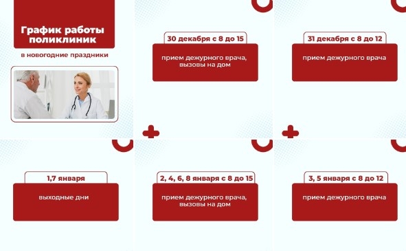 С 30 декабря по 8 января вологжане не останутся без медицинской помощи. Неотложную можно будет получить в поликлиниках в часы работы учреждений.