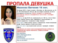 Всем, кто располагает какой-либо информацией о местонахождении Евгении Ивановой, просят позвонить по телефонам: 02; 102 - полиция; 8-921-129-88-80 и 8-921-060-66-56, сообщает ИА "СеверИнформ".