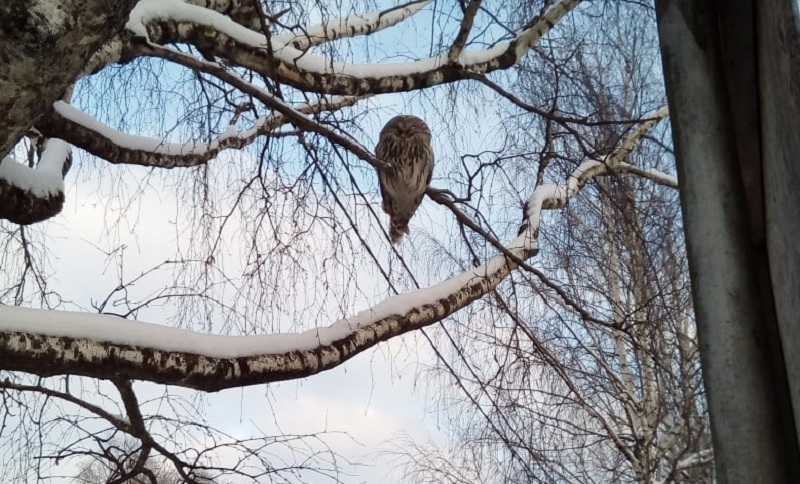 Курьезный случай произошел 24 января в селе Объячево республики Коми. Как пишет «Комиинформ», местные жители убирали муниципальную елку, и в какой-то момент прямо под ноги одной из женщин свалилась живая сова. Правда, очевидцы уточняют, что птица упала с березы (видимо, стоявшей рядом с елкой). Как пишет в соцсетях жительница села Елена Черных, сова упала прямо на снег, другая женщина взяла ее в руки, намереваясь отнести на станцию юннатов. Еще один очевидец Сергей Игнатьев успел сделать фото хищницы.
