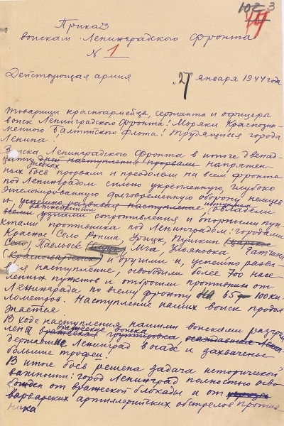 В честь 80-летия Минобороны рассекретило документы о полном освобождении Ленинграда от блокады. На портале опубликовали описания боевых действий, карты с замыслами советского командования, фотографии и многое другое. Среди уникальных документов - черновик приказа командующего войсками Ленинградского фронта о снятии блокады от 27 января 1944 года, сообщает ИА «СеверИнформ».