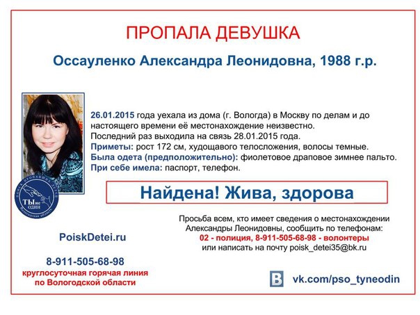 Пропавшая месяц назад Александра Оссауленко