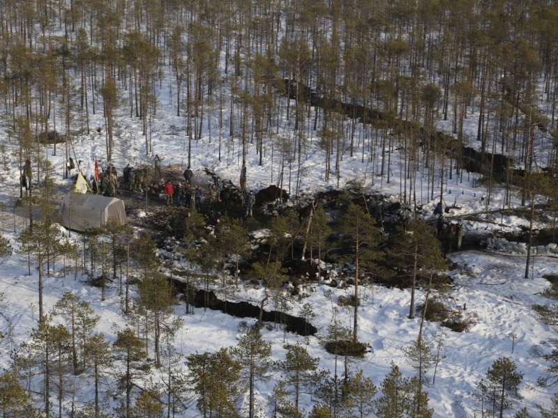 «Вологодское объединение поисковиков» третий год ведет работы по подъему самолета и погибших членов экипажа. Главная сложность заключается в том, что работы проводить можно только зимой, когда на болоте есть лед. Поисковики делают полынью, устанавливают над ней треногу и в водолазном снаряжении погружаются на глубину от четырех до шести метров, где на ощупь ищут обломки, детали самолета и останки летчиков.