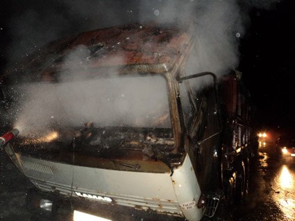 К моменту приезда на место пожарных кабина автомобиля уже полностью была охвачена пламенем. Спасти водителя не удалось. При осмотре кабины инспекторы пожарного надзора обнаружили газовую горелку и два бытовых прибора.