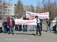 Напомним, во вторник, 24 апреля, Премьер-министр России Владимир Путин заявил, что проблемы обманутых дольщиков, возникшие из-за несовершенства законодательства, должны решаться на местном уровне. Однако вышедшие в пятницу на пикет череповчане убеждены, что решение избранного Президента областные власти проигнорируют. «Власти области игнорировали закон, В. В. Путина, нас и наших детей», - написано в листовках, которые дольщики распространяли во время митинга на Площади Чайковского.
