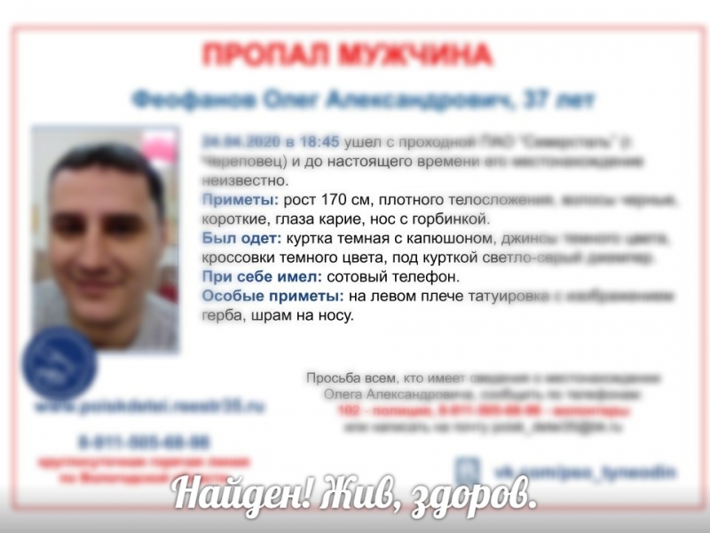 От 37-летнего мужчины не было вестей с 24 апреля. Олег Феофанов вечером вышел с проходной предприятия, на котором работал.