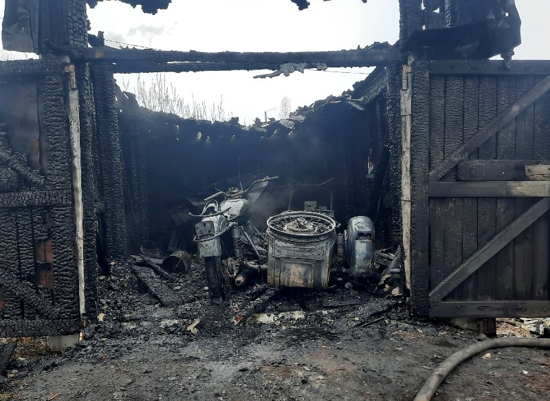Мотоцикл сгорел вместе с гаражом