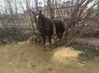 Лошадь просто бегала по улицам. Скорее всего, она была на привязи, но смогла оторвать веревку. Мужчина пытался спасти от копыт детей во дворе.