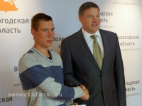 В Вологодской области наградили героя, который спас из горящего дома четверых человек. 22-летний молодой человек получил из рук Олега Кувшинникова часы и мобильный телефон.