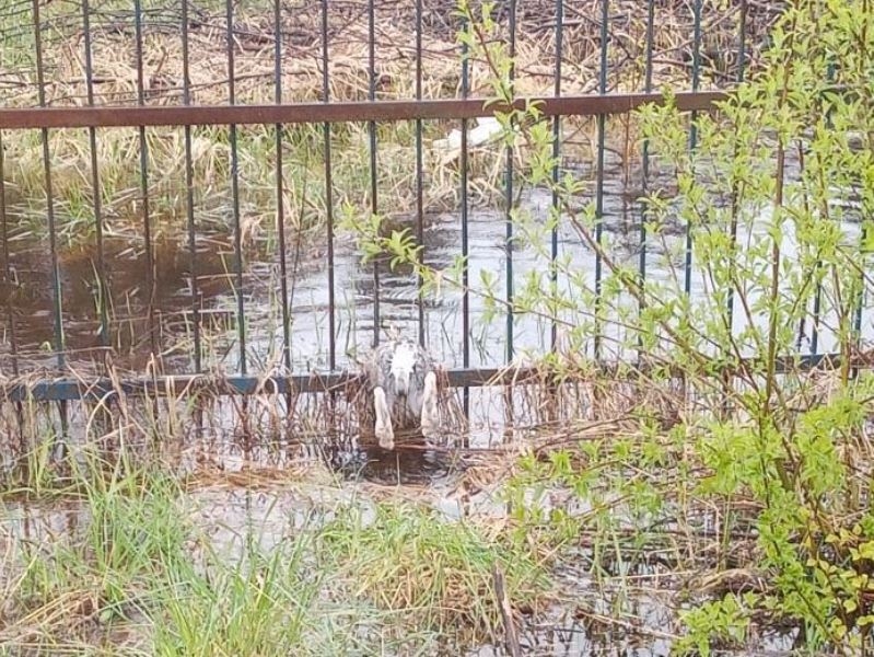Зверек застрял между металлическими прутьями забора. Как поясняют местные жители, из леса зайцев выгнала большая вода. Сейчас в поселке Лесозавода Усть-Кубенского района подтоплены 59 домов, При этом в четырех домах вода затопила пол, пишет официальный сайт мэрии Череповца.