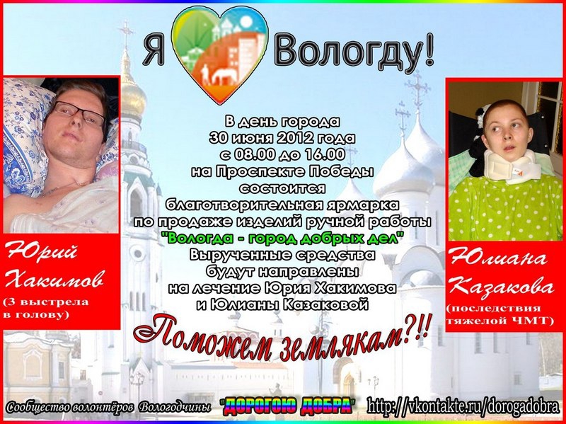 Благотворительная ярмарка в помощь Юрию Хакимову и Юлиане Казаковой пройдет в Вологде