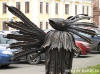 скульптура "Птицы-говоруна" - персонажа книг Кира Булычёва и фильма Романа Качанова «Тайна третьей планеты». Этот арт-объект на День рождения областной столице подарил кузнец Артем Маршак.