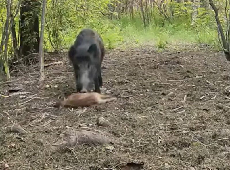 На кадрах видно, что кабаненку становится плохо, и он падает на бок. Мать-кабаниха тут же начала делать поросенку массаж в районе сердца своим пятачком. Малыш сначала не подавал никаких признаков жизни, но через пару толчков очнулся.