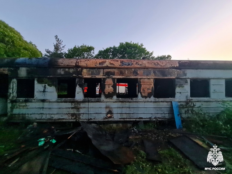Накануне вечером поступил звонок о том, что на улице Кирова на территории предприятия железнодорожного транспорта горит списанный пассажирский вагон.