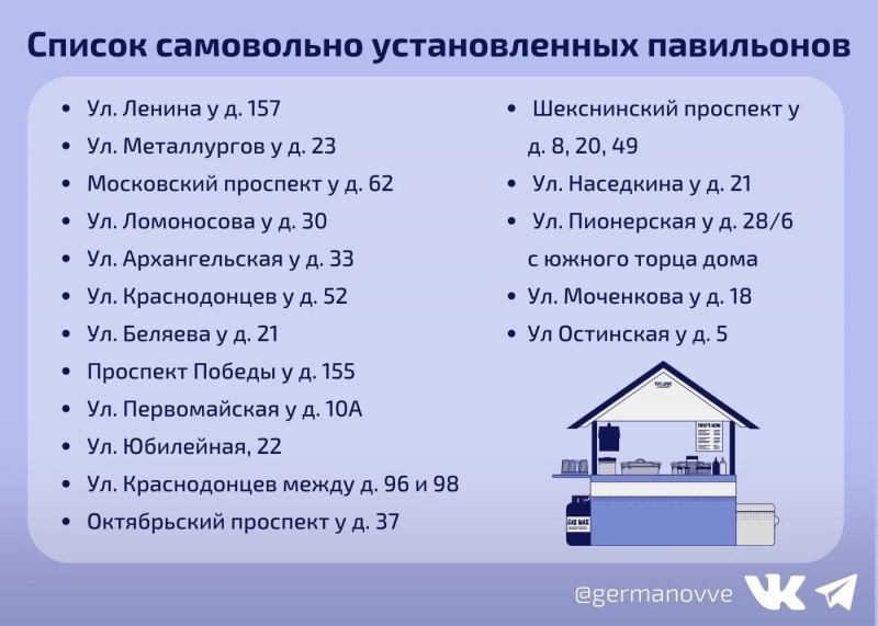 У предпринимателей есть время до 19 августа, чтобы либо убрать незаконно установленные павильоны, либо согласовать с жильцами условия их размещения. После этой даты все ларьки будут снесены, сообщает ИА «СеверИнформ».