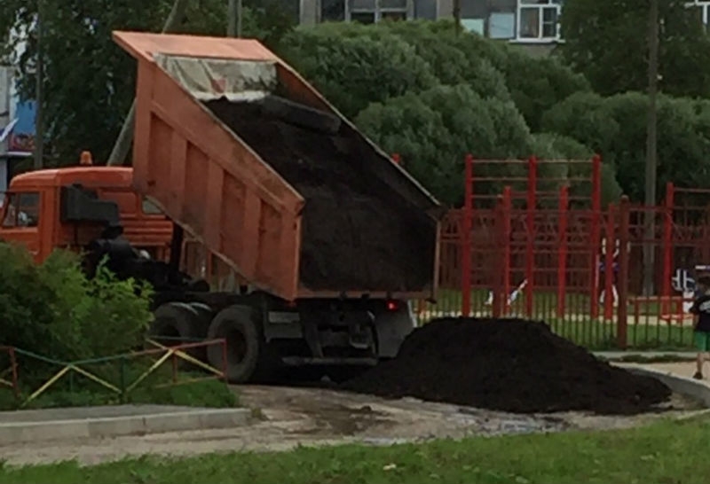 Накануне на территорию зеленой зоны было привезено две машины грунта для подсыпки болотистой местности.