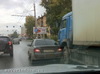 Еще одна авария произошла на Ленинградском мосту в Вологде утром сегодня, 27 сентября. Об этом сообщает ИА "СеверИнформ - Новости Вологды". Около 9:45 здесь по касательной столкнулись "Daewoo Nexia" и автофургон "КАМАЗ". Это произошло на съезде с моста в сторону ПЗ возле перекрестка с улицей Гончарной. По словам очевидцев, легковая иномарка, скорее всего, при перестроении в правую полосу не уступила дорогу ехавшему там грузовику. По предварительным данным, в этом ДТП никто не пострадал.
