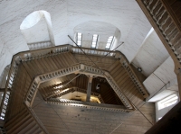 На колокольне Софийского собора сейчас идет второй этап реставрации. Предстоит обновить отделку интерьеров, основную и винтовую лестницу. Пока работы находятся на подготовительной стадии. Специалисты устанавливают ограждения и строительные леса, подбирают материалы. Процесс лестниц совсем не простой. Это связано с нестандартностью архитектуры самой колокольни и ее лестниц.