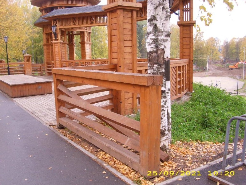 "Увы, пара саморезов не устояла перед парой крепких ног, а один из брусков в ограждении отвалился и уже почти месяц находится в таком состоянии. Стилизованные колонны обиты вагонкой, которая мало-помалу отваливается. При ближайшем рассмотрении видно, что прикреплены дощечки парой саморезов с промежутками. Строители сэкономили или конструкторы? На лестнице уже месяца два не хватает доски", - перечисляет неприятные реальности Любовь Зырянцева.