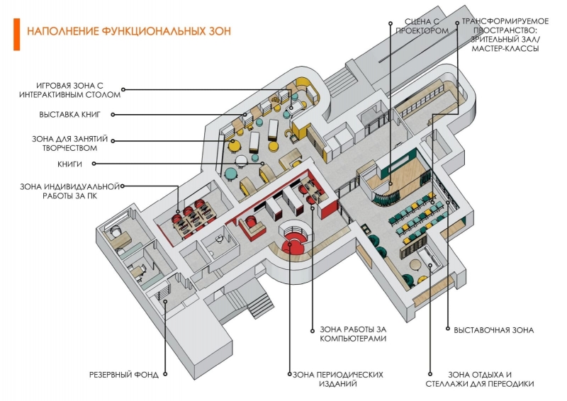 В переформатированной библиотеке найдется место театральным постановкам, перфомансам, конкурсам, встречам с писателями. Семейные, историко-краеведческие клубы здесь смогут работать на постоянной основе.