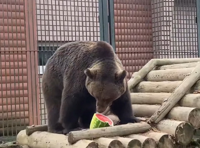 В качестве особого угощения косолапые получили арбуз и дыню, это их любимое лакомство. Не все знают, что, несмотря на то, что медведи хищники, их рацион на 3/4 состоит из растительной пищи.