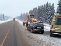 Автомобилистка врезалась в грейдер на трассе в Вологодской области