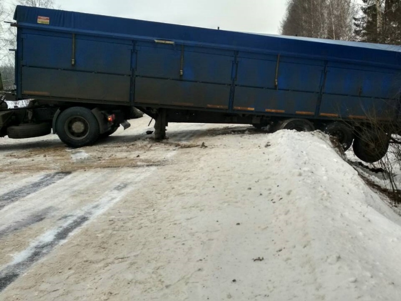 Как оказалось, причиной перекрытия дороги стала авария. Сегодня около половины первого дня на 3 км трассы Кубенское — Северная ферма в Вологодском районе водитель фуры не справился с управлением и машину развернуло. Грузовик полностью перекрыл дорогу.