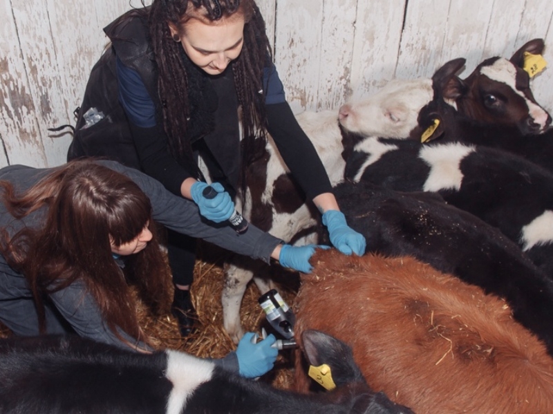 Волонтеры ВГМХА отправились в КФХ Механиковой, где произвели плановый осмотр животных и провели витаминизацию стада.