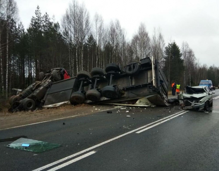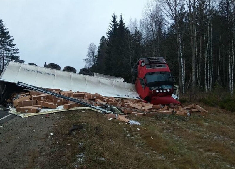 ВАЗ с фурой столкнулись на трассе Вологда - Новая Ладога: есть пострад