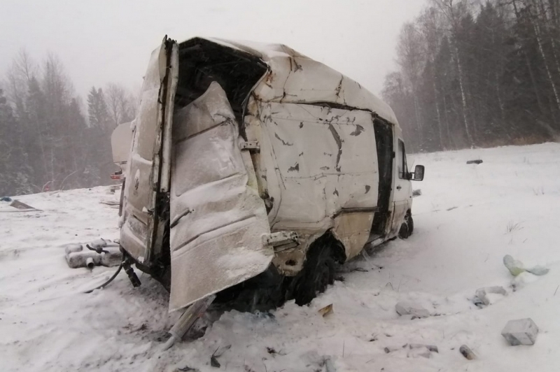Микроавтобус врезался в фуру на федеральной трассе