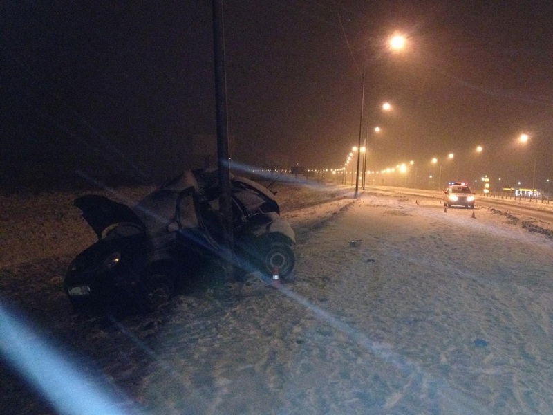 Под Вологдой Matiz врезался в световую опору: погиб пассажир