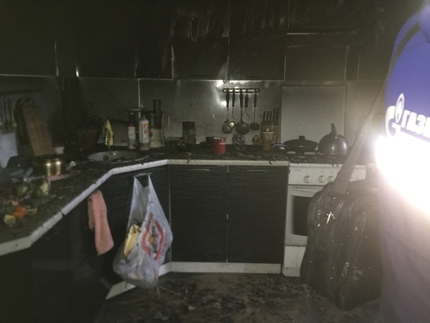 На вызов выезжали 15 человек и 6 единиц техники. Огонь повредил кухонную мебель,внутренняя отделка квартиры частично закопчена.