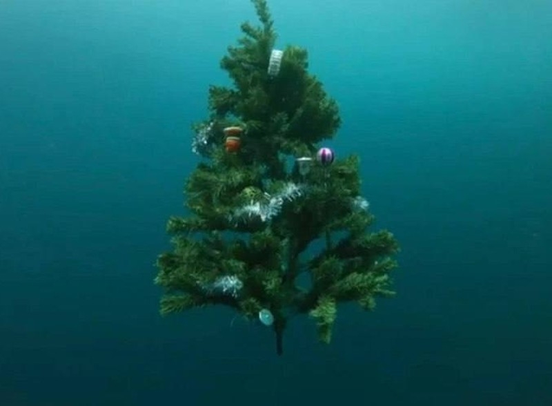 Дайверы установили елку на глубине 8 метров от поверхности Байкала