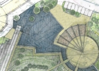 Помимо танцевальной площадки набережную дополнят амфитеатр с зелеными насаждениями, павильоны, пешеходный мостик, горка, качели, ручей с водопадами.