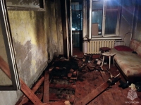 Прибывшие пожарные заметили задымление в подъезде, а сам очаг находился в квартире на пятом этаже.
