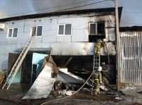 Сотрудники МЧС сумели ликвидировать открытое горение на оптовой базе в Рубцово под Вологдой. Сейчас пожарные проливают помещения водой.