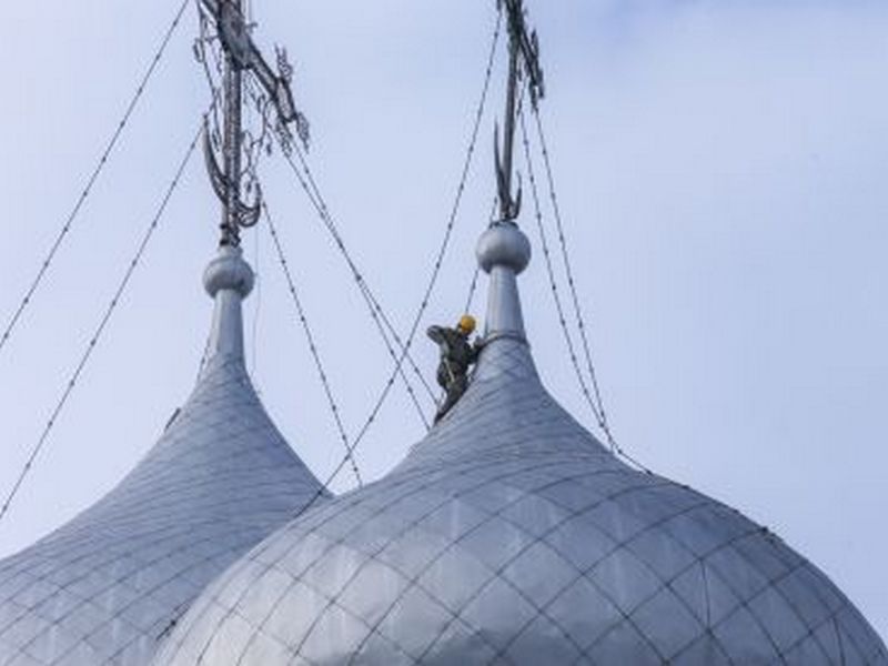 В понедельник, 29 февраля, начнутся работы по демонтажу креста Софийского собора. Работы будут проводить на высоте 60 метров. В настоящее время специалисты сделали необходимые замеры, а также продиагностировали состояние покрытия куполов и кровли.