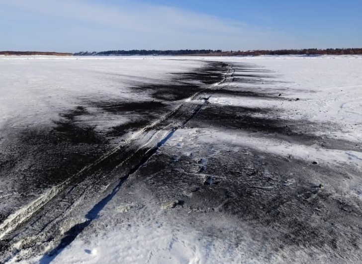 Работы ведут сотрудники администрации и курсанты речного училища. Они обрабатывают территорию от переправы в сторону моста. Всего планируется зачернить около 20 километров ледового покрытия.