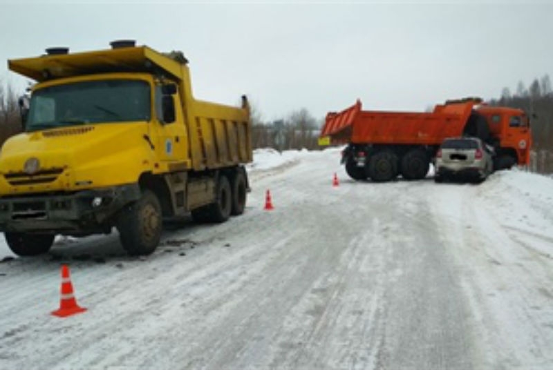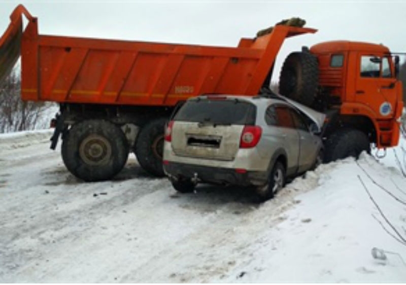 Воскресенское-Глушково-Иванов Бор водитель Шевроле не обратил внимание на состоянии дороги и не сбросил скорость. В итоге машину занесло, и она влетела под грузовик Татра. Но это было еще не окончание истории От удара Шевроле откинуло на другой большегруз КамАЗ.